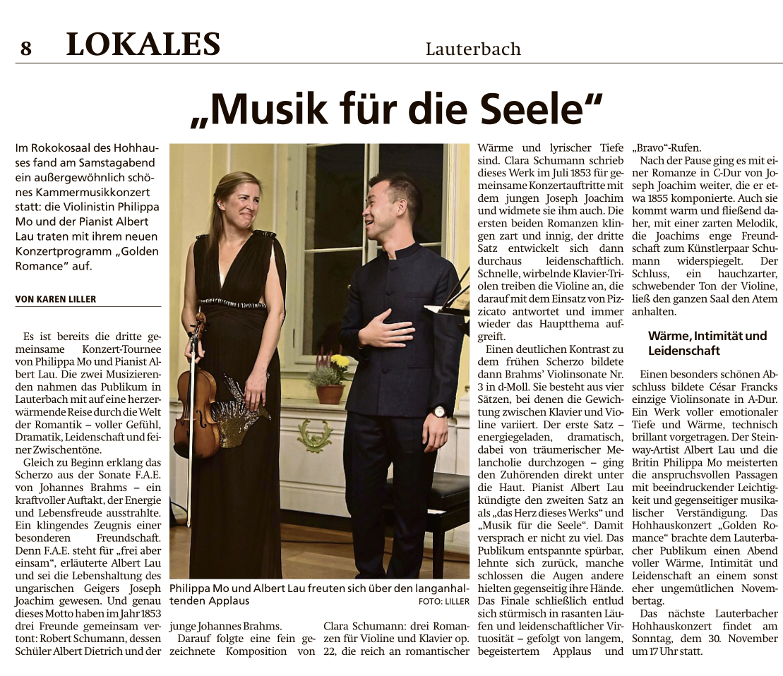 „Musik für die Seele” Lauterbacher Anzeiger am 10. November 2025